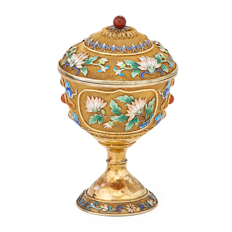 Vintage Chinese Cloisonné Floral Design VaseChinese Cloisonné Floral Lidded JarMar 05, 2026An Exquisite Cloisonne Lotus Pattern Chi-Dragon Pattern HatstandMar 13, 2026A copper tire cloisonné enamel gilt floral pattern smokerMar 07, 2026Vintage Asian Cloisonne Lidded Urn with Floral PatternsMar 04, 2026An Exquisite Cloisonne Lotus Pattern Hat StandMar 05, 2026A Chinese Cloisonne Enamel Gilt Bronze Censer6 days LeftAn Exquisite Cloisonne Lotus Pattern Eight Treasures Pattern CenserMar 04, 2026An Exquisite Gilt Bronze Inlaid Gems Flower and Fruit Pattern JarMar 13, 2026An Exquisite Filigree and Gilding Flower Pattern Cover Jar,Inlaid GemsMar 07, 2026A CHINESE IMPERIAL CLOISONNE ENAMEL HAT STANDMar 01, 2026A Chinese Cloisonne Enamel 'Lotus' Tripod Censer6 days LeftA CLOISONNÉ ENAMELED COVERED JAR WITH LANDSCAPE DESIGNMar 05, 2026A Sino-Tibetan gilt metal and cloisonne enamel vajrayana liturgical implementFeb 25, 2026An Exquisite Cloisonne Lotus Pattern Dragon Pattern Double-Ears JarMar 06, 2026An Exquisite Cloisonne Lotus Crane Pattern Jar with CoverMar 04, 2026
