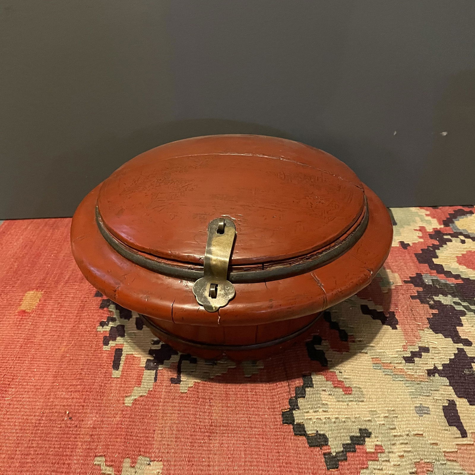 Low Rounded Chinese Bamboo Basket with Lid Antique