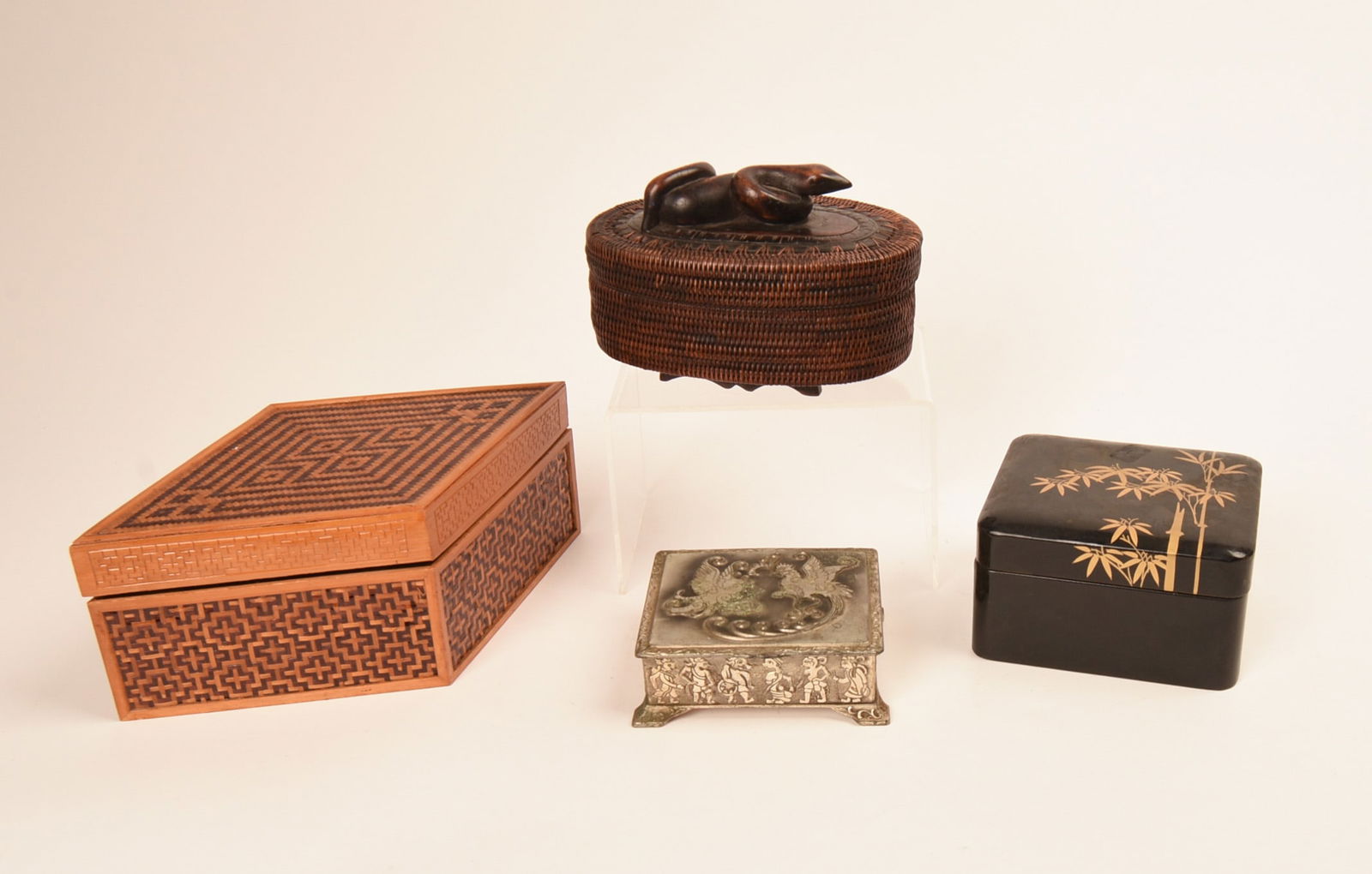 LOT OF THREE CHINESE VINTAGE JEWELRY BOXESMar 01, 2026Estate Lot of 5 Antique Chinese & Bronze: Box, Bottle, Tray, Vase & Leather WalletMar 15, 2026(5) JAPANESE BLACK LACQUER PAINTED TABLE BOXES2 days LeftSIX ASSORTED ANTIQUE WOODEN BOXESMar 07, 2026(4) JAPANESE LACQUERED TABLE BOXES, 1 WITH MOP INLAY1 day LeftAntique lap desk, Chinese lacquer jewelry box, and more boxesFeb 26, 2026(4) COLLECTION OF CARVED WOOD, INLAID & LEATHER-CLAD TABLE BOXES2 days Left9 Chinese Carved Bone Boxes, BoxedMar 07, 20265 Wooden Snuff BoxesMar 14, 2026Collection of Vintage Chinese Incense BurnersMar 06, 2026Collection of Early Asian Trinket BoxesMar 28, 2026Chinese & Japanese Carved Wood Boxes, 3Apr 14, 20265 ASSORTED DECORATIVE BOXESFeb 28, 2026Tramp Art and Folk Art Wooden Jewelry BoxesMar 04, 2026Lots Chinese porcelains with box7 hrs LeftA HUANGHUALI WOOD CARVING DOUBLE DRAGON PATTERN COVERED BOXFeb 26, 2026