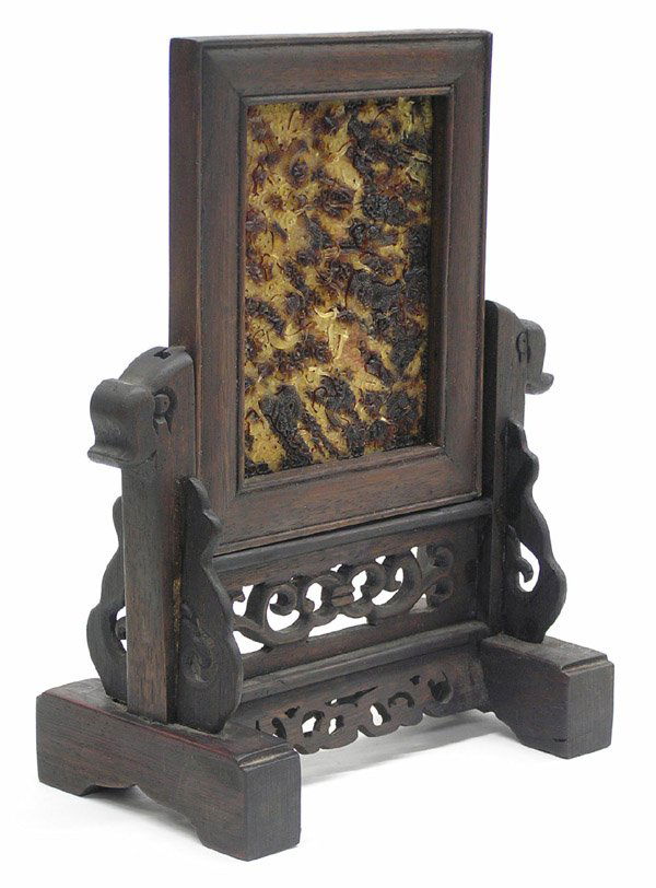 Chinese Wood Table Screen, Shell Plaque