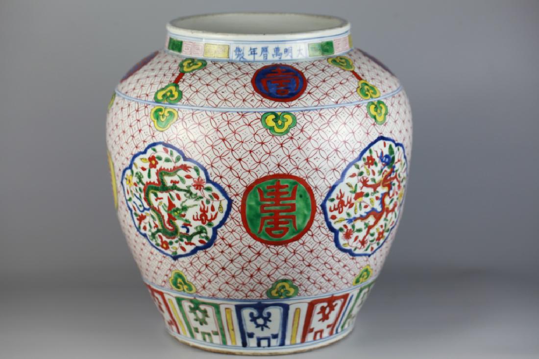 WUCAI DRAGON AND PHOENIX STRAIGHT-NECK JARFeb 25, 2026A DOUCAI COVERED JAR WITH ROUND DRAGON DESIGN2 days LeftMing Jiajing Sancai Glazed Large Jar with Openwork Dragon PanelsFeb 28, 2026A Rare Wucai Seawater and Dragon Pattern Cover JarMar 14, 2026A Rare Wucai Flower and Bird Pattern Tiger-Ears Cover JarMar 14, 2026A Huge Wucai Flower and Dragon Pattern Cover JarMar 07, 2026A Rare Blue and White Doucai Auspicious Cloud,Dragon and Phoenix Pattern JarFeb 28, 2026A Huge Doucai Wucai Seawater and Dragon Pattern Beast-Ears Cover JarMar 07, 2026An Exquisite Wucai Fish and Lotus Pattern JarFeb 24, 2026An Exquisite Wucai Lotus Pattern Dragon Pattern Seawater Pattern JarFeb 27, 2026Ming Jiajing-style doucai dragon lid jarFeb 24, 2026A DOUCAI HEAVENLY CHARACTER JAR WITH CLOUD AND DRAGON DESIGNFeb 28, 2026Ming Dynasty Doucai Globular Jar (Tian Character Jar) with Sea Water and Dragon MotifsFeb 28, 2026An Exquisite Doucai Dragon Pattern Seawater Pattern JarFeb 24, 2026A multicolored gold-painted dragon pattern jar made in the Xuande year of the Ming DynastyMar 14, 2026WUCAI GLAZE DRAGON GINGER JAR AND COVERFeb 25, 2026