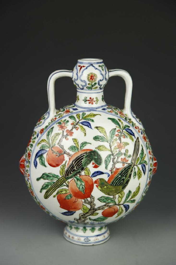 Chinese Wucai Moon Flask Vase