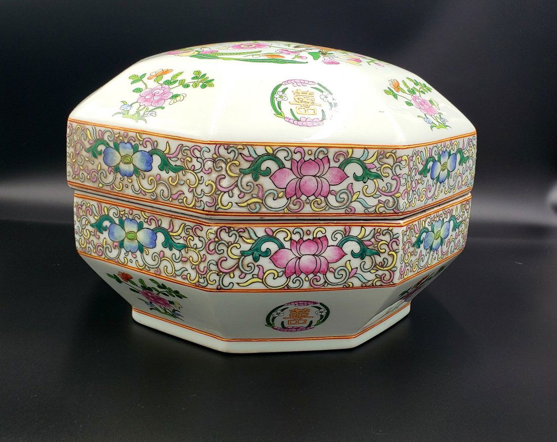 Chinoiserie Ceramic Octagon Shaped Jar