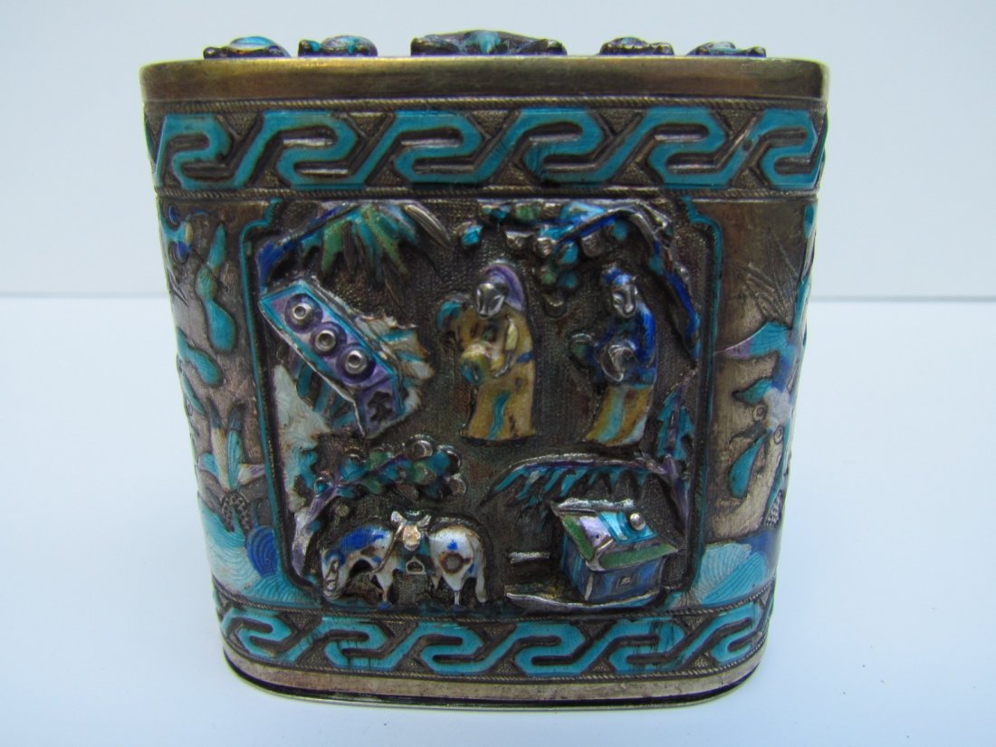 Chinese Enamel over Metal Jewelry Box3 days LeftAntique Chinese Silver Dragon BoxFeb 21, 2026A silver-gilt treasure lid boxFeb 28, 2026An Exquisite Silver Inlaid Gems Flower Pattern BoxFeb 24, 2026A Chinese Silver Trinket Box, 20th Century, 90FG4 days LeftA Brass Container7 days LeftA silver-gilt brushed Hetian jade lid box from the Qianlong period of the Qing DynastyMar 07, 2026A Han Dynasty copper cuo gold and silver beast pattern square lid boxFeb 28, 2026A silver-gilt brushed Hetian jade lid box from the Qianlong period of the Qing DynastyMar 07, 2026A silver-gilt brushed Hetian jade lid box from the Qianlong period of the Qing Dynasty354 Lots AwayA Chinese Jewellery-plated BoxFeb 15, 2026Chinese Porcelain and Metal BoxFeb 15, 2026Chinese Enamel Jewelry Box7 days LeftVintage Tibetan Silver Precious Stone Inlay BoxFeb 17, 2026Tang Dynasty Gilt Silver Dragon-Pattern Reliquary Box6 days LeftAntique Chinese Porcelain Box13 hrs Left