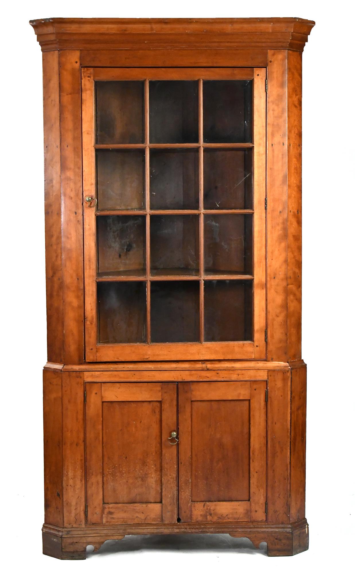 CHIPPENDALE 2 PART CHERRY CORNER CUPBOARD, CA