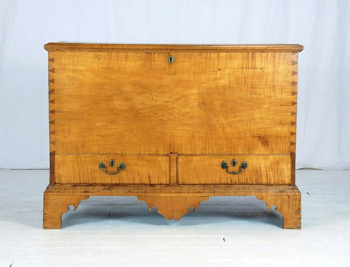 Chippendale Curly Maple 2 Drawer Blanket Chest