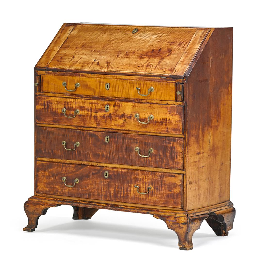 CHIPPENDALE CURLY MAPLE SLANT LID DESK