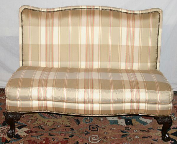 CHIPPENDALE STYLE FABRIC SETTEE, H 42 1/2"
