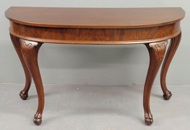 Chippendale style walnut D-shaped console table.