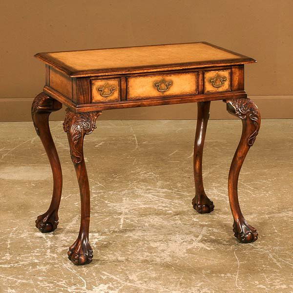 Chippendale style walnut three drawer lowboy on car