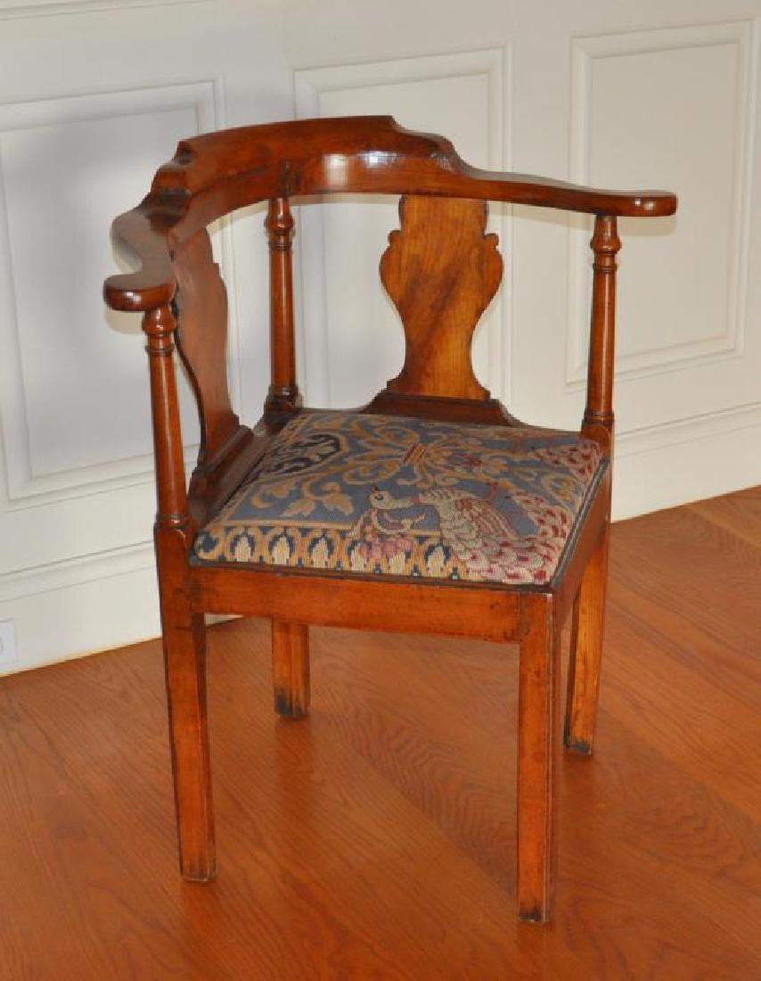 Chippendale Walnut Corner Chair, Needlepoint Seat