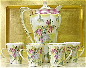Chocolate Pot Set Hydrangea Flowers Fluted Nipp