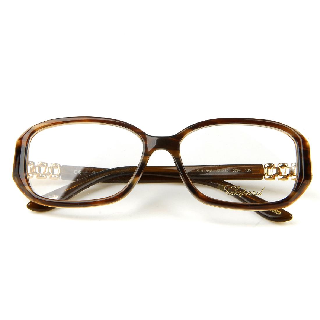 SoldCHOPARD - a pair of rimless glasses. Featuring rimlessCHOPARD - a pair of rimless glasses. Featuring rimless demo print lenses, wooden arms with gold-tone accents and logo engraved temples. Model VCHA26.See Sold Price