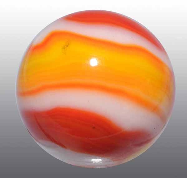 SoldMarbles: CHRISTENSEN AGATE COMPANY, Striped Opaque. 21/32". Mint (9.9).CHRISTENSEN AGATE COMPANY, Striped Opaque. Two seam. Electric orange bands and looping on light blue. Cambridge OH, circa 1927-1930. 21/32". Mint (9.9).See Sold Price