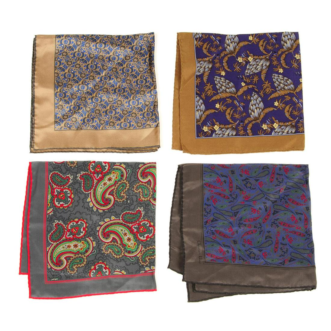 CHRISTIAN DIOR - five silk pocket squares. To include