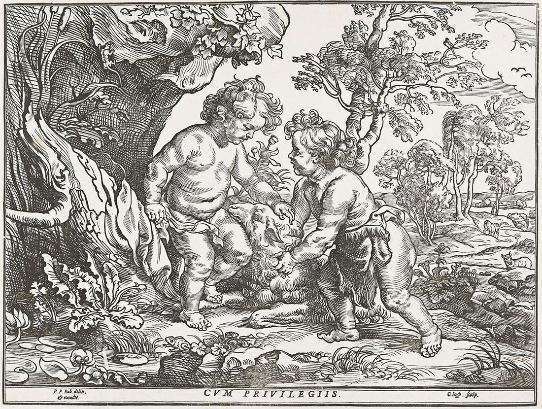 CHRISTOFFEL JEGHER (AFTER RUBENS) Infant Christ and St. John the Baptist Playing with a Lamb.