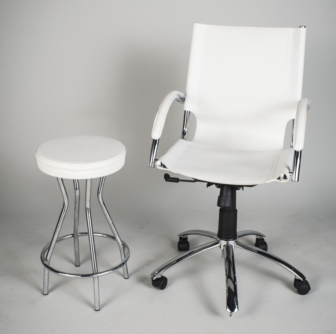 Chrome and Leather Armchair and Stool