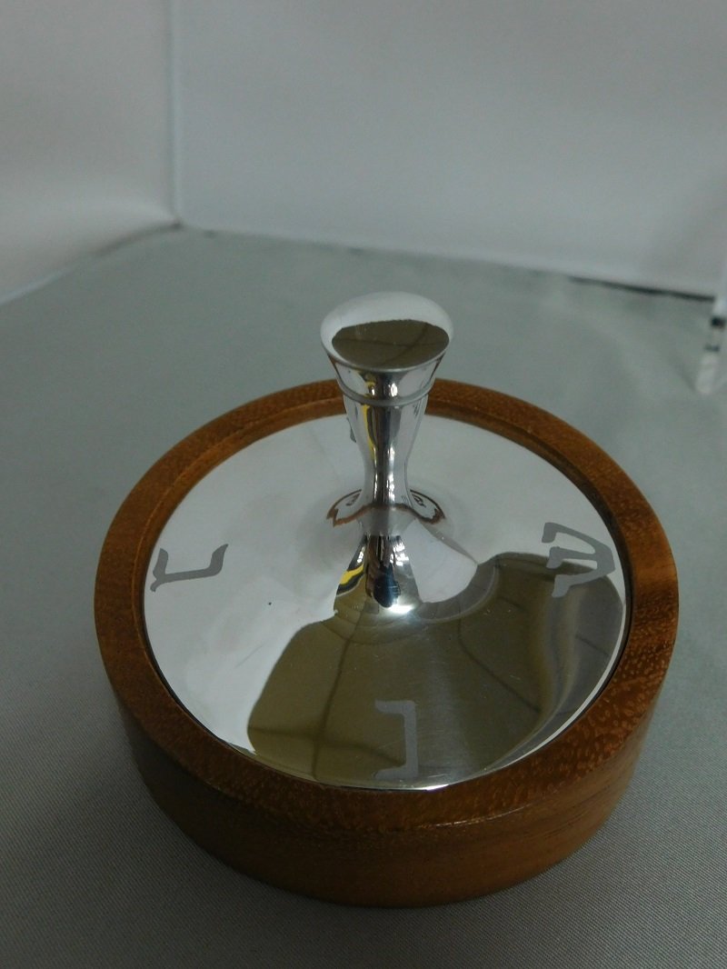 Chrome Dreidel With Wooden Base