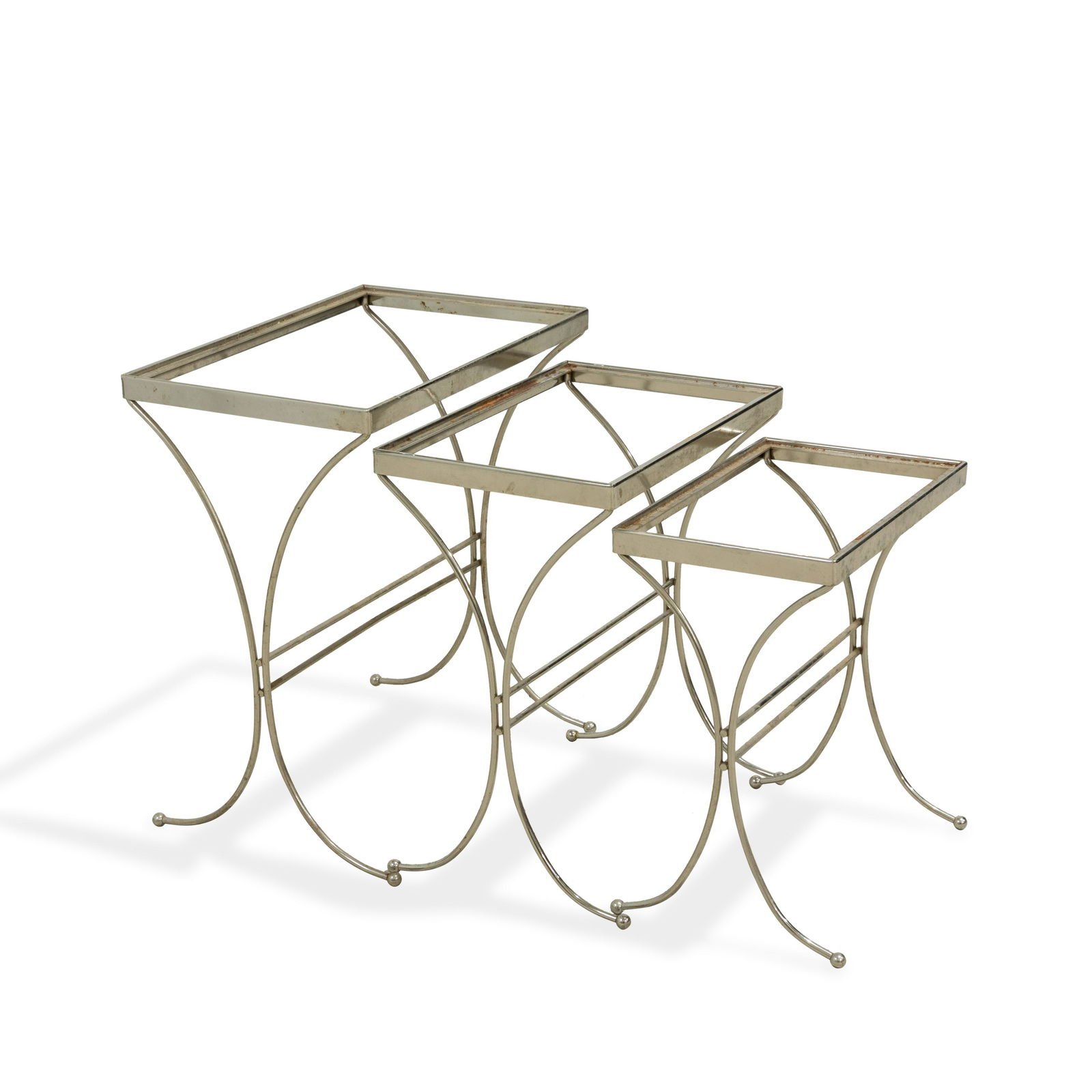 Willy Rizzo Style Modern Chrome Tubular Stacked Cocktail Table, FranceMid-Century Modern Chrome Nesting Tables, 34 days LeftIron Scrolling Outdoor/Patio Nesting Side Table SetMar 06, 2026Mid-Century Glass and Brass Nesting Tables by Design Institute AmericaMar 05, 2026NEST OF THREE FRENCH BRASS AND GLASS FAUX BAMBOO STYLE TABLES IN THE MANNER OF JANSEN C 1960.3 days LeftJohn Salterini Nesting TablesMar 15, 2026A set of vintage brass and glass occasional nesting tables1 day LeftHollywood Regency Chrome & Brass Maison Jensen Style Nesting TablesMar 20, 2026PAIR OF CONTEMPORARY METAL & GLASS SIDE TABLESMar 08, 2026PAIR OF MODERN CHROME & GLASS SIDE TABLES23 hrs LeftGlass and Metal Dining and Console Tables2 days LeftCONTEMPORARY THREE-PIECE NEST OF TABLEMar 08, 2026French, Occasional tables, pairMar 05, 20261970s Vintage Hollywood Regency Polished Brass X Side Tables - a PairCHROMED IRON COFFEE TABLE C 1970 HAVING A SMOKED GLASS TOP.3 days Left2 Metal glass topped tables.2 days Left
