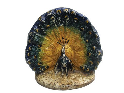 SoldAntique Hubley Cast Iron Figural Peacock Painted DoorstopAntique Hubley Cast Iron Figural Peacock Painted Doorstop, marked on reverse, 208, circa 1920sSee Sold Price