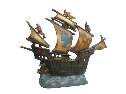 SoldAllied Metal Ind. Galleon Ship Doorstop VINTAGEVintage cast iron galleon ship doorstop. Made by Allied Metal Ind. Inglewood, California. Measures 11"x13.5" $25 DOMESTIC SHIPPING.See Sold Price