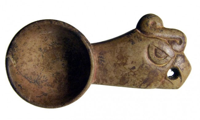 Cice Chavin stone spoon, parrot's head handle
