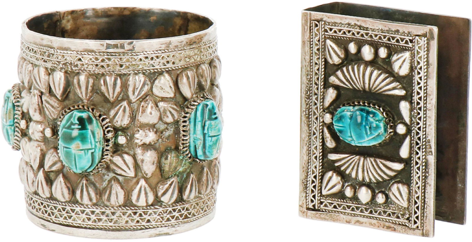 A composed lot of two antique silver variously decorated sugar spreaders3 days LeftNATIVE AMERICAN / SOUTHWESTERN-STYLE SILVER BROOCHES AND OTHER JEWELRY, LOT OF NINEMar 04, 2026NATIVE AMERICAN / SOUTHWESTERN-STYLE STERLING AND OTHER SILVER WATCH BRACELET TIPS / ENDS, LOT OFMar 04, 2026NATIVE AMERICAN AND SOUTHWESTERN-STYLE STERLING AND OTHER SILVER CUFF BRACELETS, LOT OF FOURMar 04, 2026NATIVE AMERICAN / SOUTHWESTERN-STYLE SAND-CAST SILVER CUFF BRACELET AND RING, LOT OF TWOMar 04, 2026Silver Buckle & Cigarette Case5 days LeftTwo similar Berber Kabylia silver anklets, early 20th century, Algeria,3 days LeftChinese Turquoise JEWELRY - Gale Bracelet Egyptian Style4 hrs LeftVintage monogram space and numbered 5 & 6 decorated brass napkin ring.Mar 01, 2026Hong Kong silver, napkin ring and salt shaker in silver.Silver Bracelets CollectionMar 01, 2026A pair of Qing Dynasty sterling silver inlaid treasures "Home and Harmony Cover BoxMar 14, 2026Vintage Jewelry Group Silver Tone Engraved Cuff Bracelets6 days LeftA group of Southwest sterling silver and turquoise jewelry4 days LeftSilver Cigarette Box5 days LeftPair of Silverplate Serviette Holders by J. W. Tufts