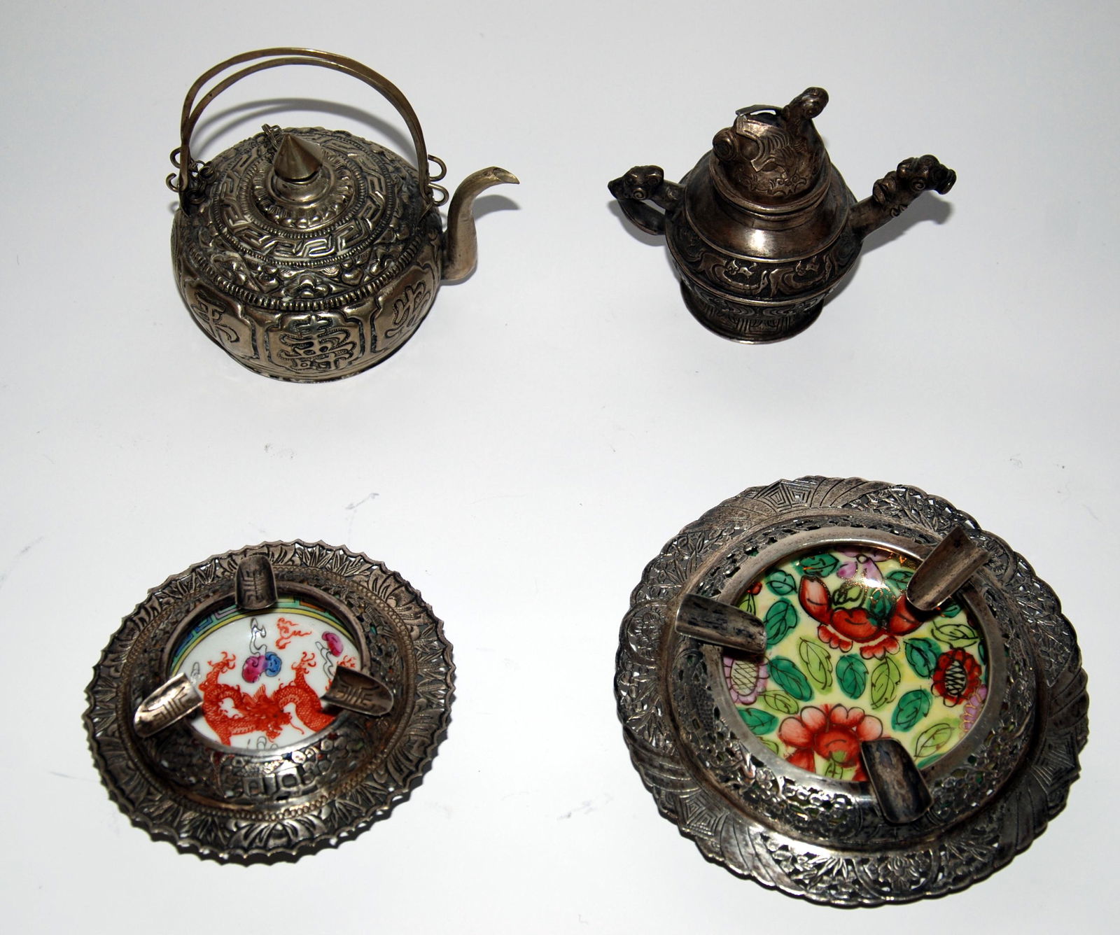Lot of Four Silverplated Cup Holders7 hrs LeftLot of sterling silver tableware. Various handled baskets and dishes, all except for one withoutMar 01, 2026A lot of three variously decorated cut crystal and opaline glass objectsFeb 24, 2026A FOUR-PIECE SILVER 'BAMBOO' TEA AND COFFEE SERVICE, MARK OF ZEE WO, SHANGHAI, CIRCA 1870-1925Mar 11, 20263 Antique Copper & Brass Powder FlasksMar 07, 2026Calamaio in argento Base ovale poggiante su quattro piedini a foggia di cariatidi alate Porta1 day LeftContinental silver tea set.Feb 24, 2026Four Piece Chinese Export Silver Tea and Coffee Set, Marked 'C.J'Mar 01, 2026Gio PontiFeb 25, 2026Manifattura milanese Servizio composto da caffettiera, teiera, zuccheriera e lattiera Metallo1 day LeftDieci oggetti in rame di varie forme, epoche eMar 03, 20263 pcs Vintage Silver Plated Tea Pots, incl. 1x W.W.H. & Co. & 1x Homan. Very Good Condition.3 pcs Vintage Silver Plated Tea Pots, incl. 1x Brooklyn & 1x Aurora? Co. Very Good Condition.Lots Chinese ceramics4 days LeftFour Antique Copper Items7 hrs LeftGarret Forbes American Coin Silver 4-Piece Tea SetFeb 24, 2026