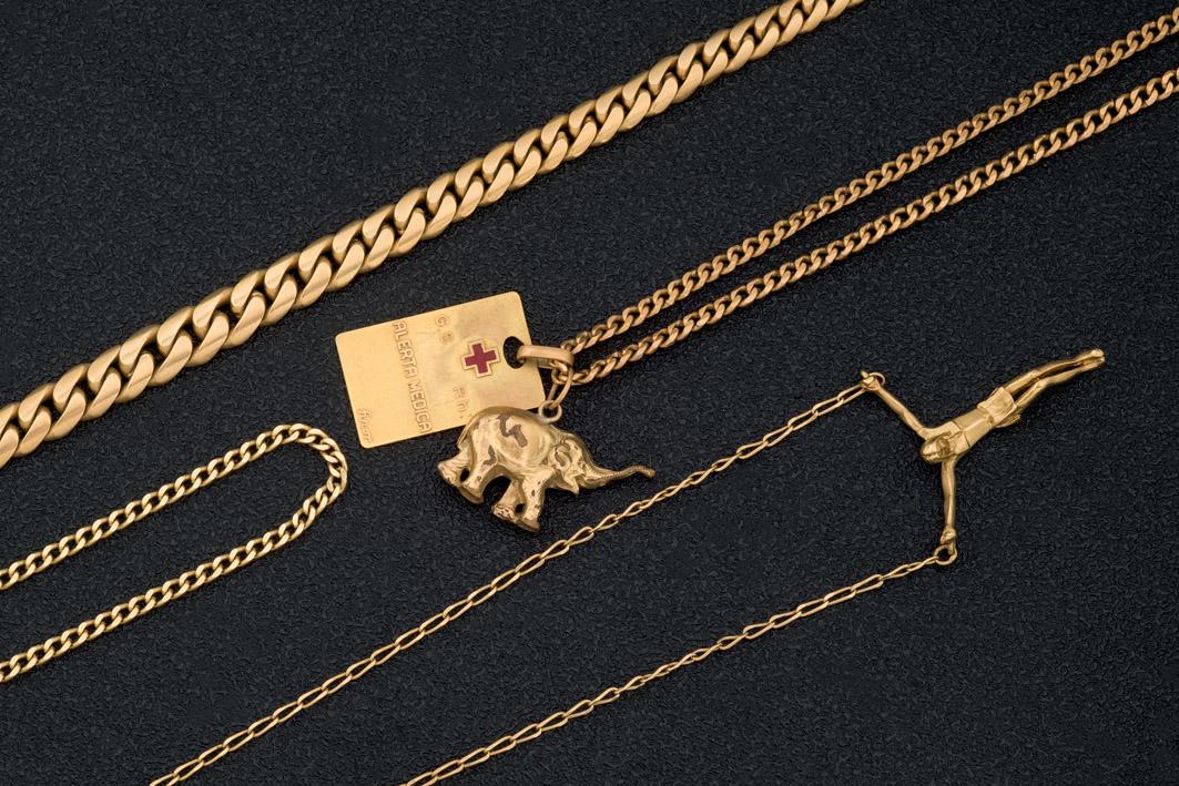 Assorted 14 Karat Yellow Gold Jewelry Collection including Brooches, Pendants, and Chains4 days Left2 Gold Chains & Egyptian PendantApr 14, 2026Group of Five Costume NecklacesApr 08, 2026Group of Five Costume NecklacesApr 08, 2026Group of Four Costume NecklacesApr 08, 2026Kestenmade, Etc. Watch Fobs and Chains, 8Apr 14, 2026Six Gold and Silver Tone Metal ChainsApr 08, 2026Group of Five Fashion NecklacesApr 08, 2026Group of Five Gold Tone Metal Fashion NecklacesApr 08, 2026Gold Tone Costume JewelryMar 29, 2026Costume Jewelry Assortment - MMA USA, Avon and othersApr 08, 20261/20 TW 12K YELLOW GOLD LADIES JEWELRY SET - (5)Mar 28, 2026