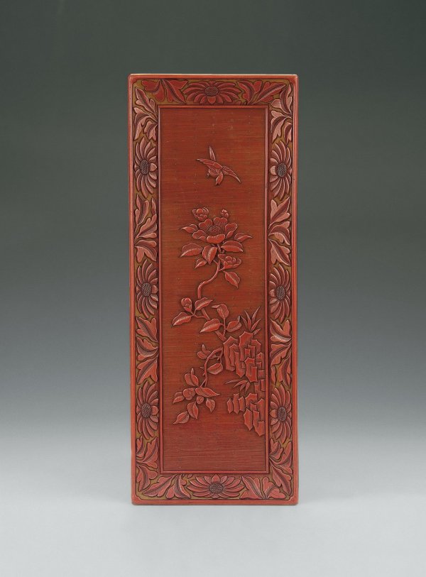 Cinnabar Lacquer Rectangular Dish with Flower and B