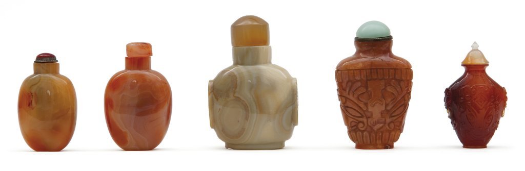 Cinque snuff bottle in agata di cui due