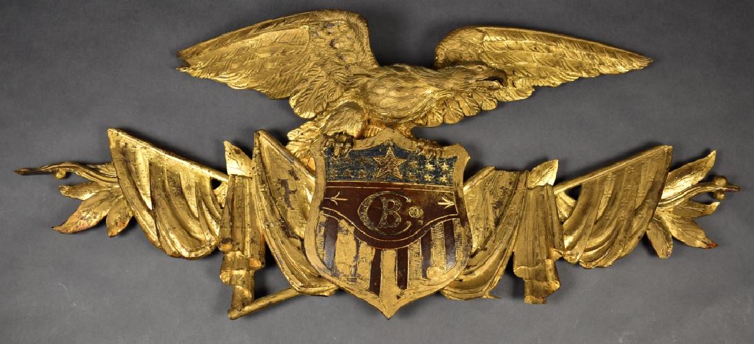 Circa 1850 Carved Wood Eagle With Shield