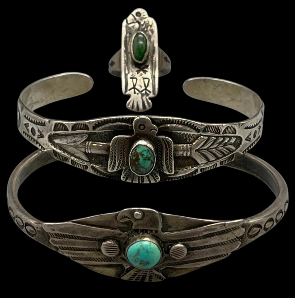 Circa 1930s Fred Harvey Era Thunderbird Ring And Two Bracelets