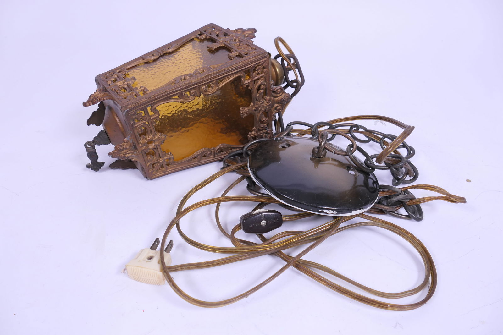 LOT OF LAMP PARTS, KEROSENE OIL BURNERSFeb 26, 2026Vintage Italian Gold-Plated Brass & Bevelled Glass Hanging LanternVictorian Arts & Crafts Stained Glass Oil Lamp Hall LanternAn Art Deco Hanging Light with Butterscotch / Amber Frosted GlassMar 07, 2026Art Deco Hanging Pendant Light FixtureMar 07, 20261930s French Art Deco Brown Milk Glass Pendant Light FixtureTwo Arts and Crafts lanterns, late 19th century,Feb 24, 2026Vintage Frosted Glass Pendant Light with Brass Chain and FitterArts and Crafts Hanging Hall Wooden LanternMar 07, 2026Art Deco 5 Light ChandelierMar 03, 2026PATINATED BRASS & GLASS 1-LIGHT HANGING LANTERN5 days LeftVictorian Era Hanging Light w/ thumb print amber glass shade (small chip). 10"W x 18"TFeb 24, 2026ANTIQUE BRADLEY & HUBBARD PUNCH TIN JEWELED HANGING LANTERN5 days LeftDaum Art Deco Acid-Etched Molded Glass and Iron ChandelierFeb 25, 2026Hollywood Regency Jewel Prisms Filigree Pendant Light, Circa 1950A Gothic Revival Brass and Colored Glass Processional LanternMar 07, 2026