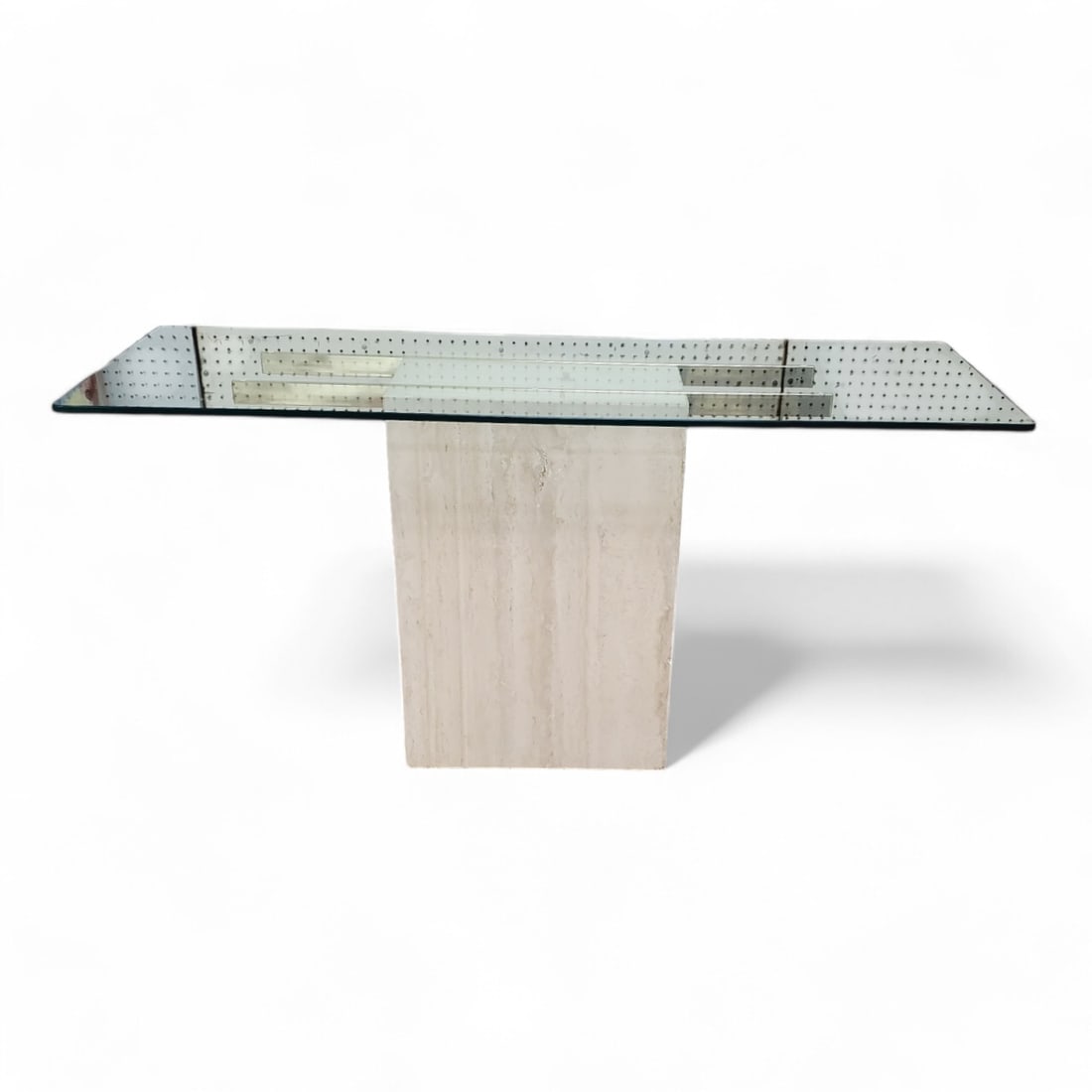 Mid-Century Modern Coffee Table Inset Travertine Marble-Top and Brass StretcherMatteo Grassi Modern Italian Travertine Double Pedestal Glass Top Dining Table, Circa 1970sMar 31, 2026Italian Travertine Coffee Table7 days LeftPost Modern, Europe Console tableVintage Italian Postmodern Scored Travertine Side Table 32x323 days LeftA FRENCH TABLE HAVING A TRAVERTINE BASE SUPPORTING A MARBLE TOP C 1970.5 days LeftMid-Century Console Table With Sunburst Wrought Iron Travertine Base And Glass TopFeb 28, 2026Mid-Century Modern Lucite and Glass Side TableLeon Rosen for Pace Collection Mid-Century Modern Brass and Glass Pedestal Dining Table, 1970sMar 31, 2026CONTEMPORARY GLASS TOP ACRYLIC DINING TABLE183 Lots AwayLucite Console Table7 days LeftChic Hollywood Regency Glass Top Coffee Table 1970s 1980sMar 03, 2026Adrian Pearsall Mid-Century Modern Brutalist Glass Top Dining Table, 1960sMar 31, 2026WOOD AND TRAVERTINE TOP DINING TABLE C 1970. DISMANTLES FOR TRANSPORT.Feb 26, 2026Mid-Century Modern Italian Travertine Dining Table 1970s4 days LeftGlass Top Console Table with Sculptural Walnut Base, Mid-Century Modern StyleFeb 27, 2026