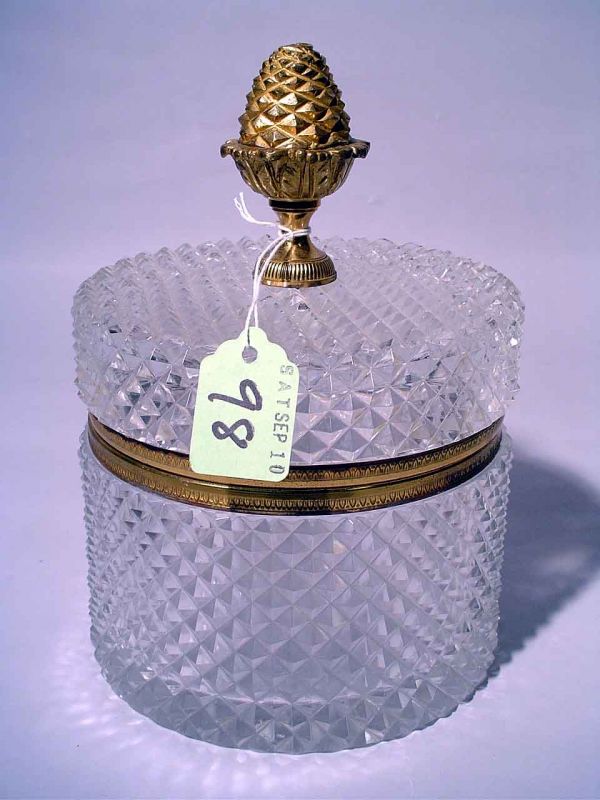 Vintage (ca. 1970) Crystal Ice Bucket w/Ice Cube Tongs6 days LeftFRENCH EMPIRE CUT CRYSTAL WITH EMPIRE FIGURE CASKET BOX6 days LeftAntique Cut Glass & Dore Bronze Biscuit Jar11 hrs LeftBaccarat 1900s Dore Bronze Crystal Centerpiece with Top40 Lots AwayJewel Box, American Brilliant Cut Glass6 days LeftJewel Box, Clear Art Glass, Bohemian Style6 days Left1920s Baccarat French Bronze Crystal Centerpiece BowlFeb 24, 20261920s Baccarat French Bronze Crystal Centerpiece Bowl2 days LeftAntique French Gilt Bronze, Crystal & Enamel BoxFeb 26, 2026Unger Floral Sterling Silver and Cut Crystal Powder Jar 3 1/4" Tall3 days LeftWaterford Cut Crystal & Polished Brass Bell Jar Hanging LampFeb 28, 2026A GERMAN SILVER MOUNTED AND GLASS PINEAPPLE1 day LeftArt Deco Pressed Glass Covered Pedestal Dish6 days LeftCovered Jar & Underplate, ABCG, Hobstar, Crosscutting, Lozenge And Fan MotifMar 07, 2026A FINE HARDSTONES INLAID SILVER-GILT BOX WITH COVERMar 01, 2026Vintage Cut Crystal Footed Bowl4 days Left