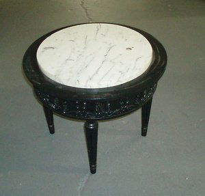 SoldLouis XVI Style Marble Top Tableearly 20th century, carved and gilt wood and gesso, inset circular marble top, skirt with floral swags, raised on fluted tapered legs. 29 x 21 in. diameter. Collection of Barry & Bonnie Setzer of BlowSee Sold Price