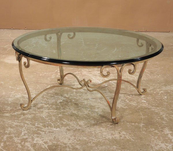 QUALITY NICKELED BRASS COFFEE TABLE BASE WITH THICK GLASS TOP C 1965. TOP APPEARS TO HAVE AKamelot Auctions4.4(346)$4002 days Left