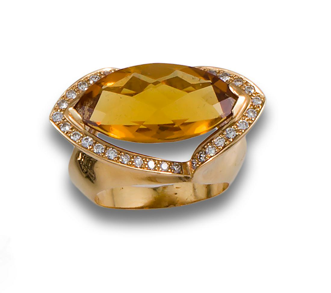 CITRINE TOP RING, YELLOW GOLD
