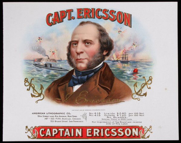 CIVIL WAR CIGAR BOX LABEL, Capt. Ericsson