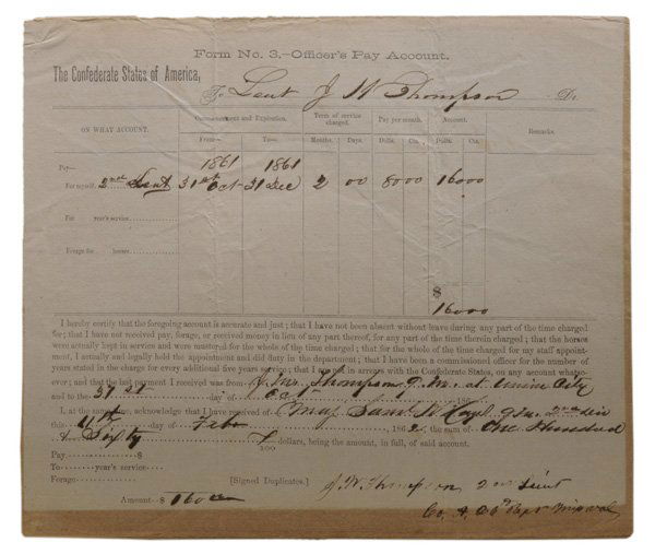Confederate reqs, invoices, fractional currency, etc.Mar 02, 2026Confederate Special order, Muster Roll, & etc.Mar 02, 20261864 Pay doc. Wife of Farrier Edward ChesworthMar 02, 2026Civil War Orders, Prisoner's Oath, Coffin order, etc.Mar 02, 2026William Henry Harness VA Cavalry, ImprisonedMar 02, 2026Massachusetts Civil War Appointments, Furlough etcMar 02, 20261865 Muster Roll 20th Regiment Mass VolunteersMar 02, 2026CSA Nathaniel L. Brooks I Co. VA 2nd Cavalry docsMar 02, 2026Maryland Civil War requisition forms, invoices, etc.Mar 02, 2026Harper's Ferry related invoices, receipts, etc.Mar 02, 2026Soldiers Pay and clothing Civil War soldiers accountMar 02, 20261863 Capt. Edward A. Wild letter re: Infantry soldierMar 02, 2026Civil War letters: Confederate under Jackson letterMar 02, 2026Mass dcs: Lieutenant Stole Whiskey Ration, etc.Mar 02, 2026Civil War General Orders for Lincoln's Funeral: "In respect...all flags will be kept at half-mast"Feb 18, 2026Capt. Otis Whitney Leave Request, Iowa Vols, etc.Mar 02, 2026