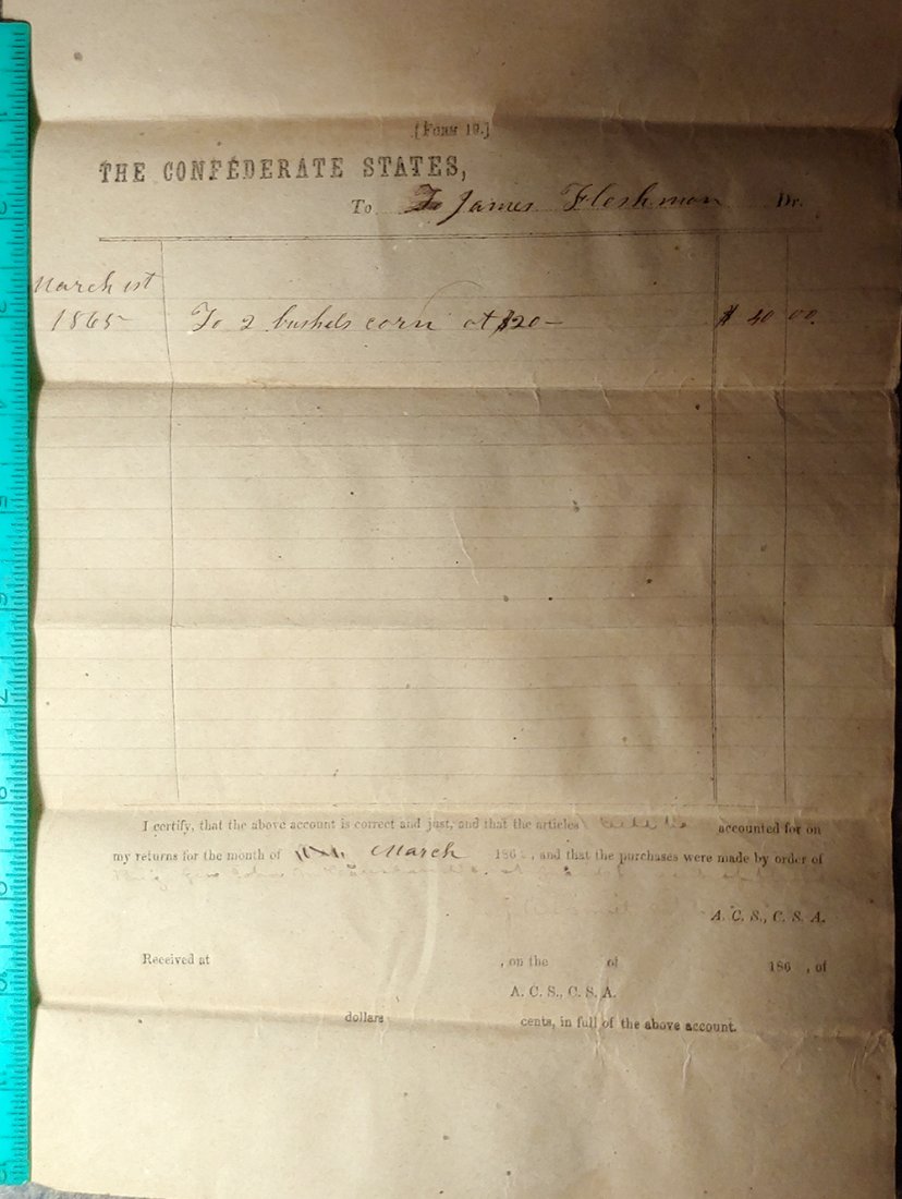 Confederate Special order, Muster Roll, & etc.Mar 02, 2026CSA Doc. Assistant Quartermaster appointmentMar 02, 2026Massachusetts Civil War Pay Document, etc.Mar 02, 2026Civil War letters: Confederate under Jackson letterMar 02, 2026Harper's Ferry related invoices, receipts, etc.Mar 02, 2026Massachusetts 34th Regiment Discharge & moreMar 02, 20261862 Virginia Confederate's Letter battle contentMar 02, 2026State of Illinois John A. Jones, Civil War Service docMar 02, 2026Confederate reqs, invoices, fractional currency, etc.Mar 02, 2026Fort Constitution – War of 1812 Era Battalion Orders with 2 John A. Dix Orders – ManuscrCapt Arthur T. Wilcox 7th OH Harper's Ferry relatedMar 02, 2026CSA Surgeon & other documentsMar 02, 2026Lt. William Berry Mass Sharpshooters lettersMar 02, 2026Captain James B. Creviston Ohio DocumentMar 02, 2026William B. Carter Kentucky First Cavalry Pass, etc.Mar 02, 2026Daniel C. Currier NH 14th Infantry, etc. TN & GAMar 02, 2026