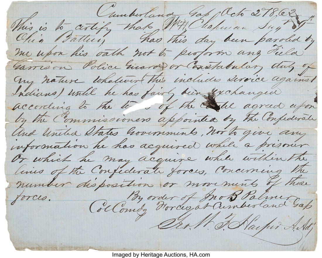 Civil War Orders, Prisoner's Oath, Coffin order, etc.7 days LeftPA Civil War Letters: Prison Guard, Lieutenant , etc.7 days LeftShenandoah Valley: Officer, Twice POW & Escaped7 days Left1861 Harper's Ferry related Civil War Letters7 days Left1863 George Dixon happy enemy retreated, etc.7 days LeftG.W. Aughenbaugh Letters - Deserters coming, etc.7 days LeftElisha Burr New York 147th letters Gettysburg7 days LeftJohn Brown related letters, Thomas Higginson, etc.7 days LeftShenandoah Valley Cpl. Tittle 55th Ohio on Generals7 days LeftMaryland soldiers and Civil War letters7 days LeftAbraham Lincoln visits New Jersey Regiment, etc.7 days Left1861 U.S. Treasury Department Letter – Civil War Banking Agent AppointmentMar 15, 2026Frank Place 157th NY Infantry POW at Gettysburg7 days LeftGettysburg battle by woman who tended to sick7 days LeftWilliam A. Denny 1st Lieut. Ohio 98th Infantry Letter7 days LeftState of New Hampshire – Militia Brigade Orders – War of 1812 Era Document – 1815