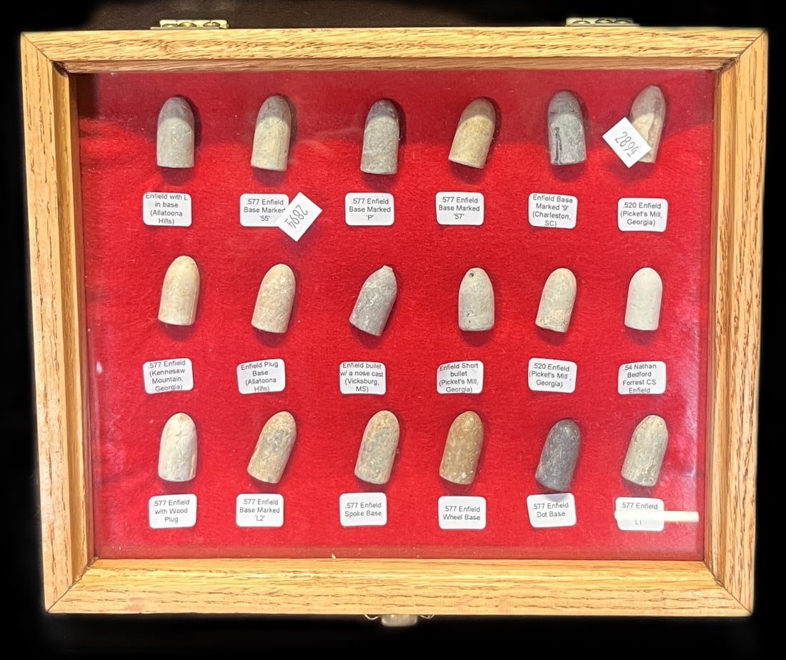 Native American Lot of Points, Spheres and ArtifactsMar 16, 2026Large Lot Projectile PointsMar 07, 2026Lot 7 Antique Bullet MoldsMar 07, 2026LOT OF 6 RUSTIC BULLET BOARDSMar 03, 2026United States Military, Rail Road, Civil War, Navy and More ButtonsMar 02, 2026LOT OF 8: COLLECTIBLE ANTIQUE TWO PIECE AMMO BOXES.Mar 03, 2026Collection of Antique Cutlery CasesEarly 1900's Cigarette Pins, Military Buttons and Other Memorabilia6 days LeftThree Boxes Of Civil War Memorabilia3 days Left12" x 18" Frame of Paleo to Archaic Tools/Knives, found by Steve Koch in Scott Co., IllinoisMar 08, 2026Antique Civil War Homeopathic Pharmaceutical CaseMar 03, 2026Native American Arrowheads and PointsMar 12, 2026Civil War Framed Artifact Display | Bullets and Alabama Currency6 days LeftDisplay of Native American Stone Implements and PointsMar 12, 2026Native American Stone Arrowheads and ToolsMar 12, 2026Outstanding 4 Case Set of US Rifle Cartridges6 days Left