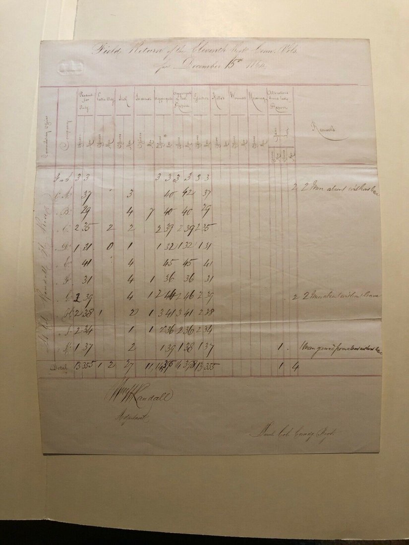 Civil War Field Return 1864 Document.