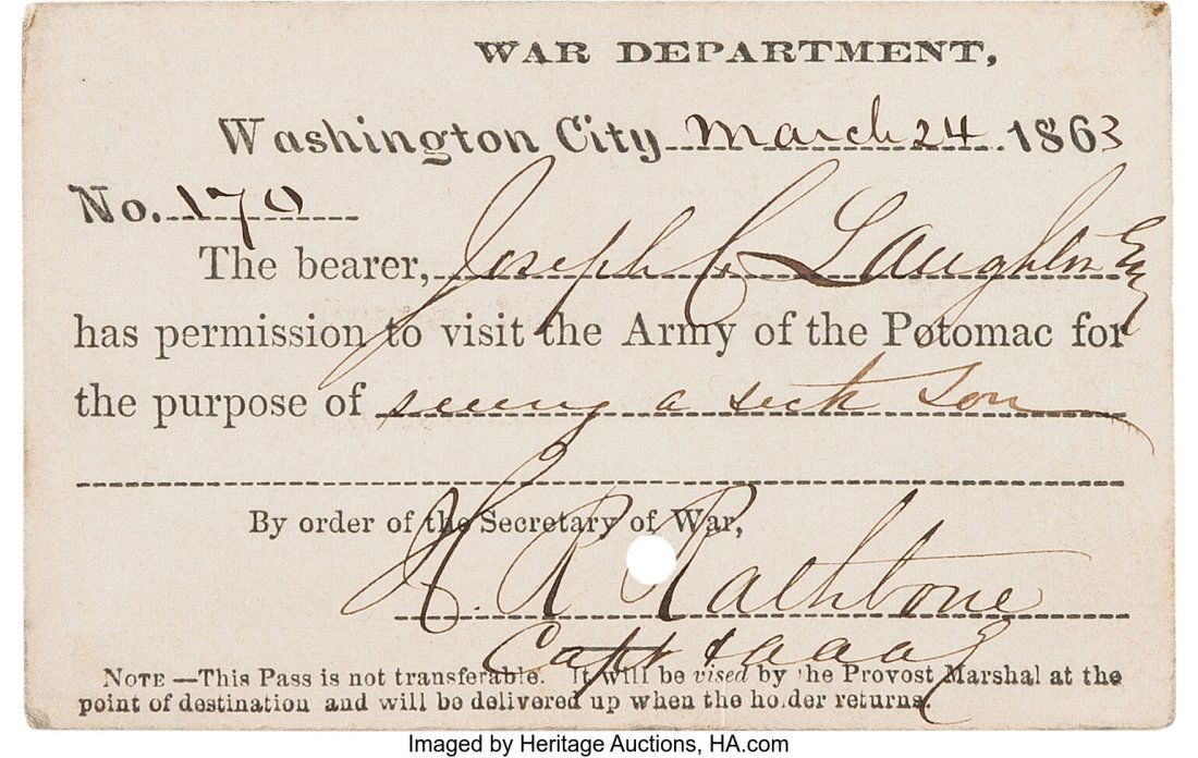 [Abraham Lincoln's Assassination]. Pass to Consp