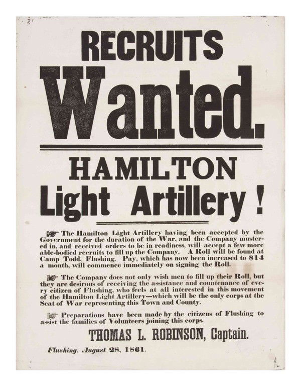 (CIVIL WAR) RECRUITING BROADSIDE. Hamilton Light A