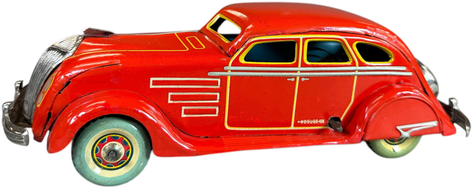 SoldJAPAN KOSUGE TIN WINDUP 1936 CHRYSLER AIRFLOWBeautiful all original Chrysler Airflow with bright paint and working windup motor. The toy is complete and has nice plated bumpers and grill. 8 1/2", ExcellentSee Sold Price
