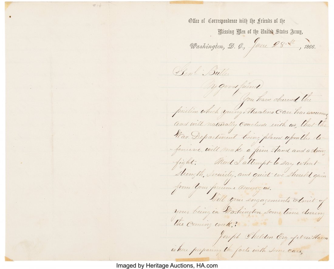 Ulysses S. Grant Autograph Letter Signed. Two pa5 days LeftElisha Burr New York 147th letters GettysburgMar 02, 2026Declaration Signer William Floyd Autograph Lette5 days LeftCharles Devens & Civil War & Post-war LettersMar 02, 2026Abraham Lincoln Handwritten and Signed Notation, Wartime4 days LeftGeorge A. Custer Period Fair Copies of Two Lette5 days LeftZachary Taylor Letter Signed. Two pages of a bif5 days LeftCivil War Soldier's Letter by Thomas J. Brannan5 days Left1861 D.C. & Virginia letters, discharge & passMar 02, 2026PA Civil War Letters: Prison Guard, Lieutenant , etc.Mar 02, 2026ROBERT E LEE AUTOGRAPH LETTER SIGNED.Mar 01, 2026George Washington Autograph Letter Signed. One p5 days LeftLincoln's Postmaster William Dennison signed letterMar 02, 2026Declaration Signer Robert Morris Autograph Lette5 days LeftFrank Place 157th NY Infantry POW at GettysburgMar 02, 2026ROBERT E LEE AUTOGRAPH LETTER SIGNED.Mar 01, 2026