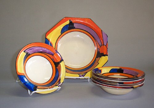 CLARICE CLIFF 'SUNRAY' DESSERT SET Paint